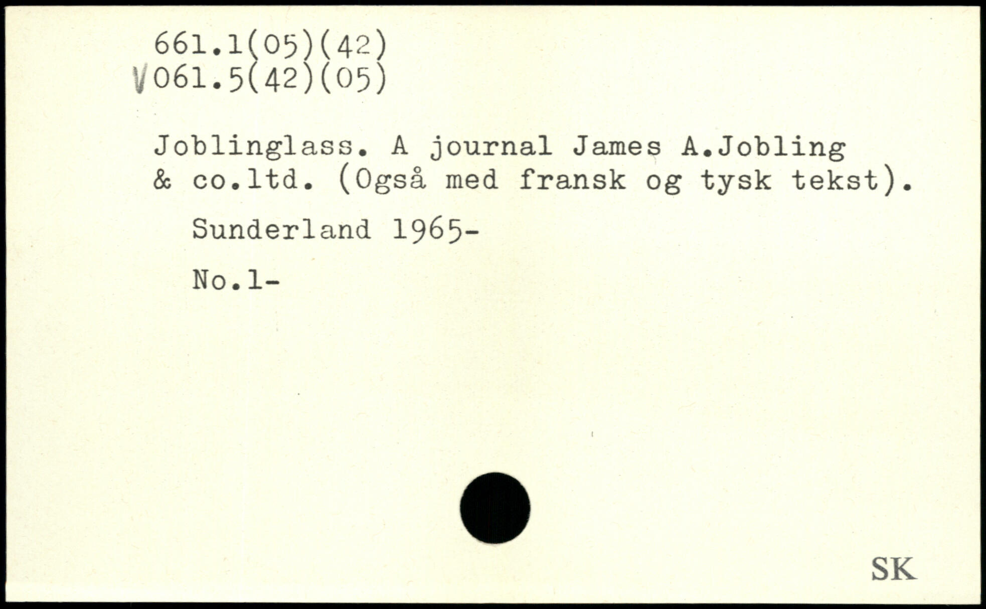 Joblinglass. A journal James A.Jobling & co.ltd. (Også med fransk og tysk tekst). Sunderland 1965- No.l-
