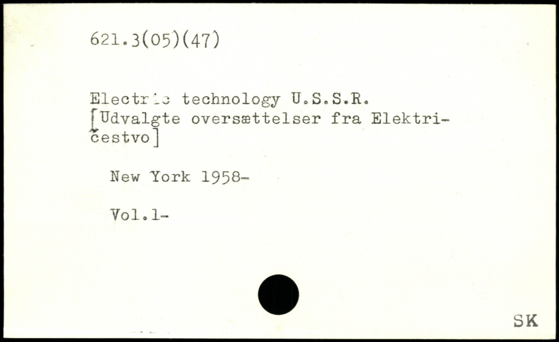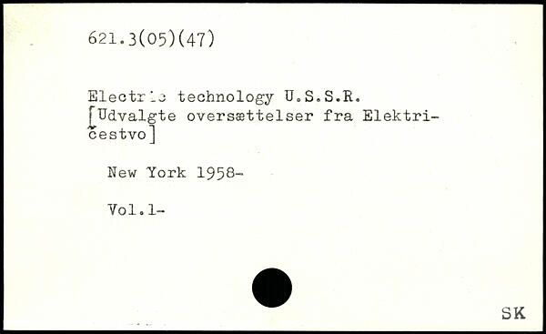 Electrlo technology U.S.S.R. [Udvalgte oversættelser fra Elektri-cestvo]