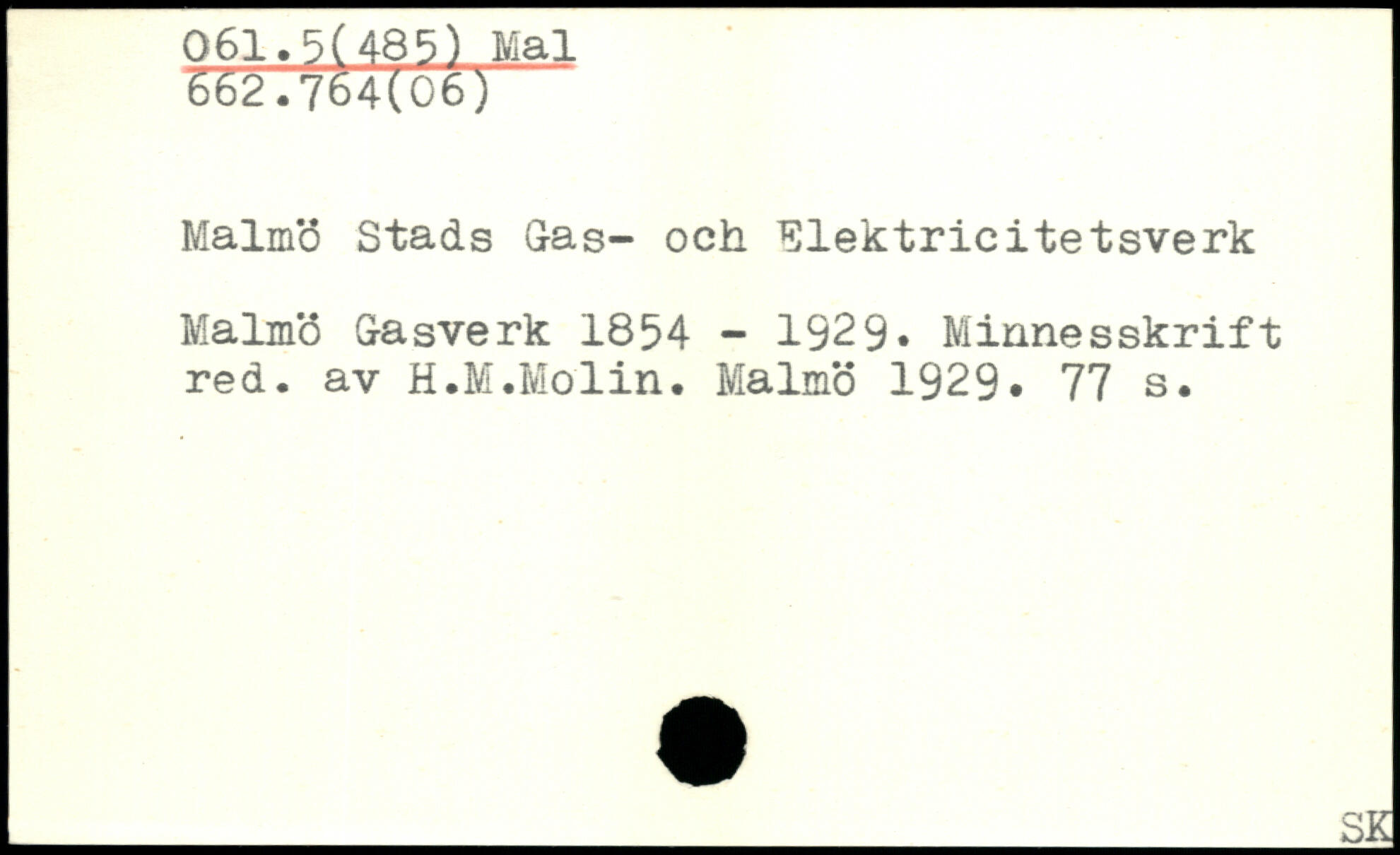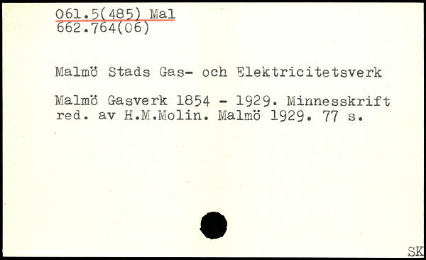 Malmö Stads Oas- och Elektricitetsverk Malmö Oasverk 1854 - 1929, Minnesskrift red. av H.M.Molin. Malmö 1929.
