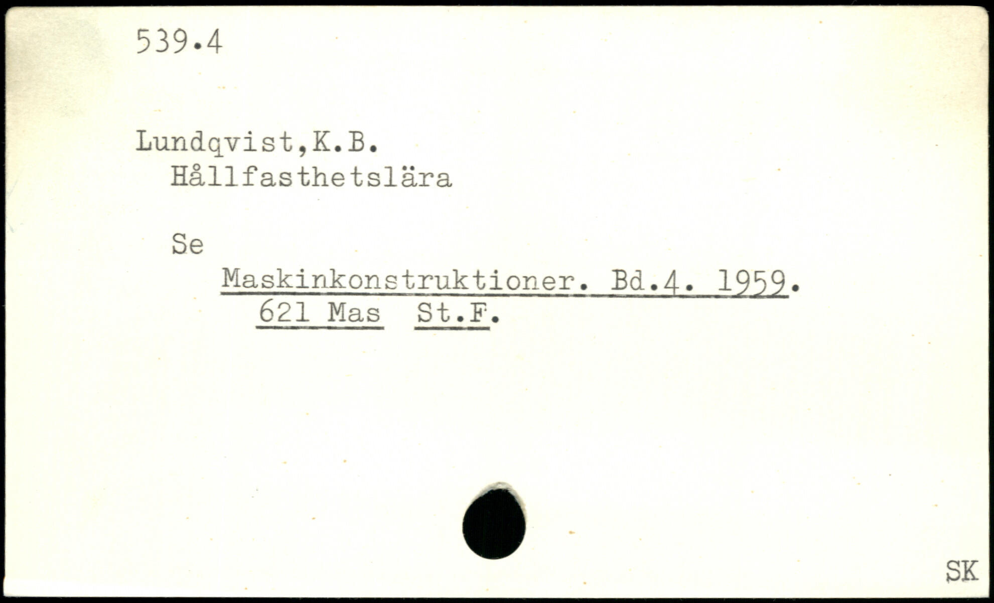 Hållfasthetslära Se Maskinkonstruktioner. Ed.4. 1959. 621 Mas St.F.