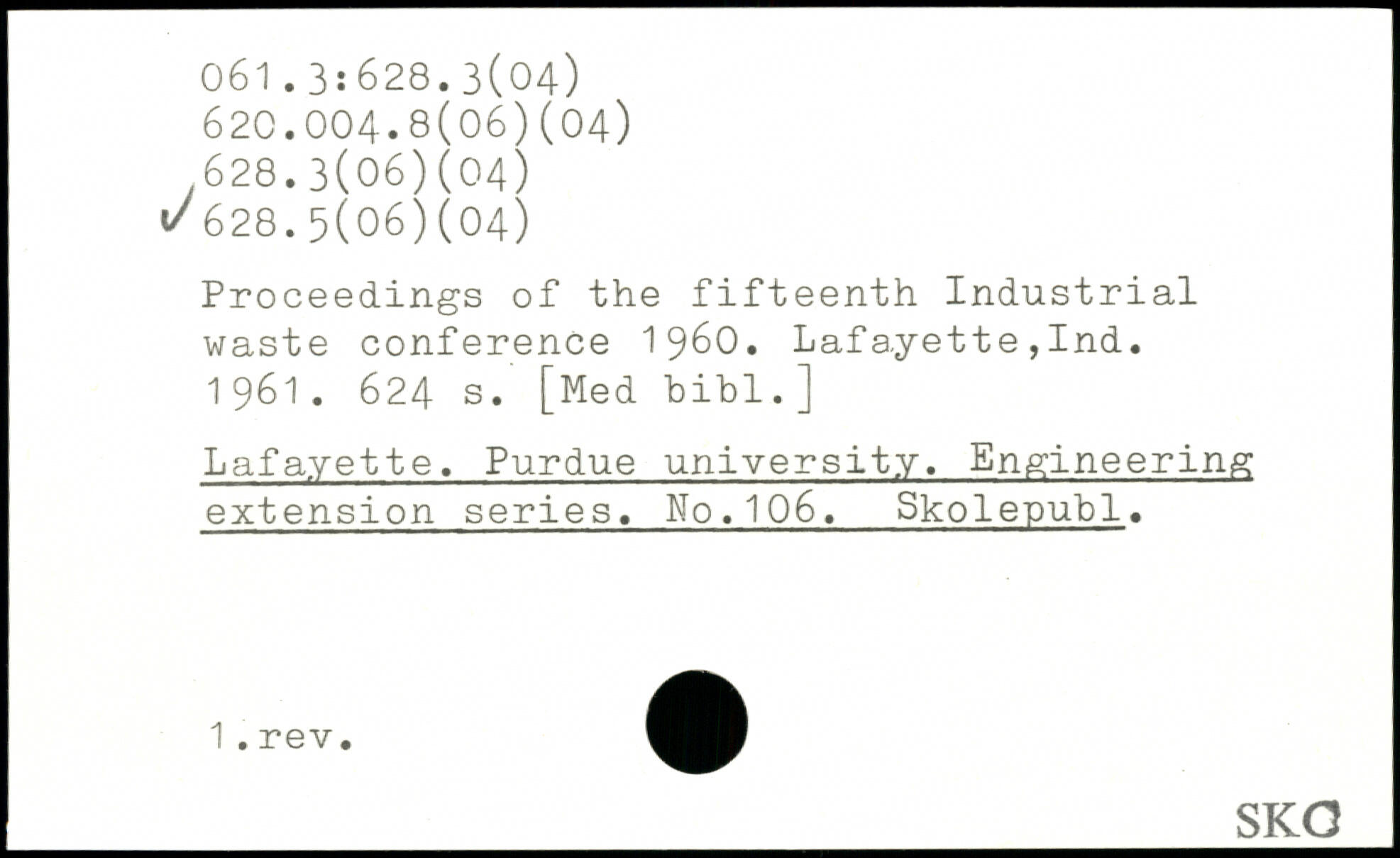 Proceedings of the fifteenth Industrial waste conference 1960. Lafayette,Ind. 1961.