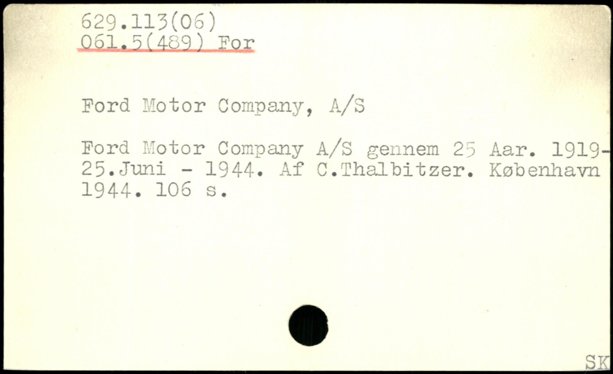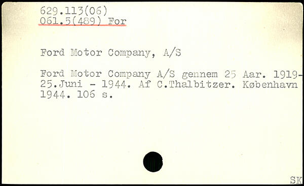 Ford Motor Company, A/S Ford Motor Company A/S gennem 25 Aar. 1919-25. Juni - 1944. Af C. Thalbitzer.