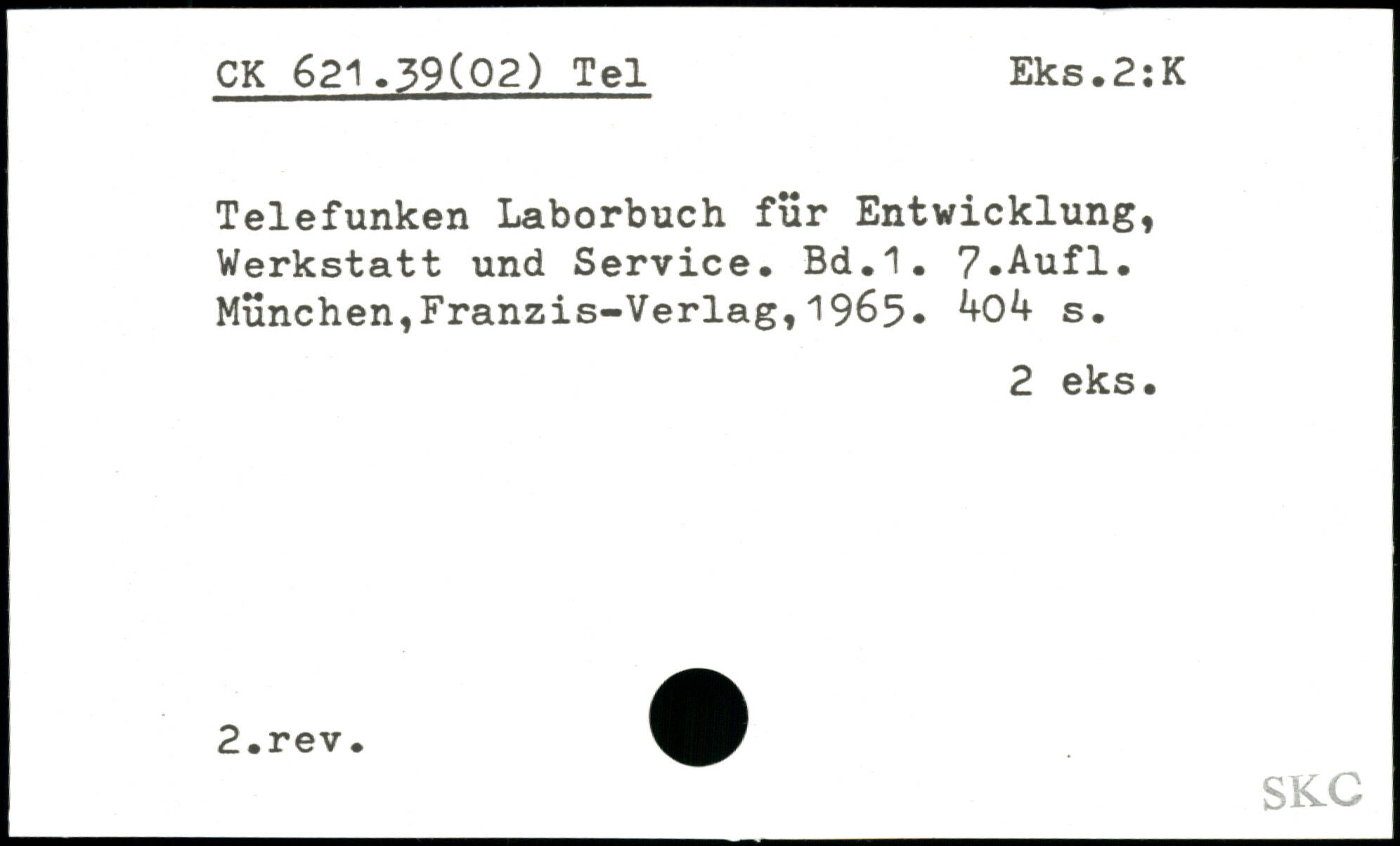 Telefunken Laborbuch für Entwicklung, Werkstatt und Service.