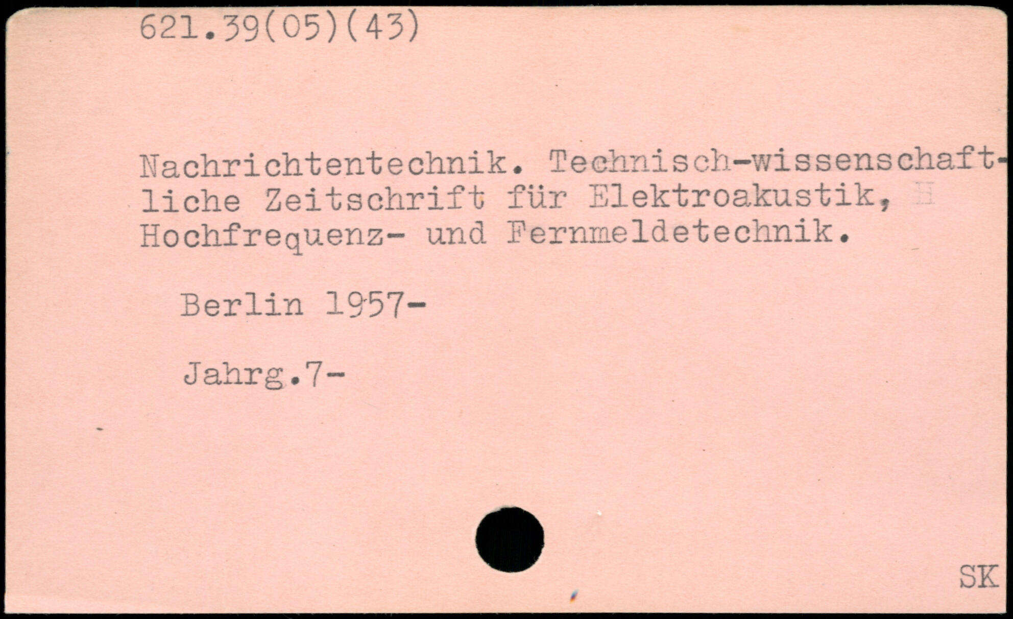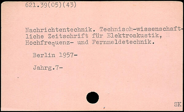 Nachri eilt ent e chnik. Teehni s ch-wi s s ens chaf t-liciie Zeitschrift für Elektroakustik, Hochfrequenz- und Fernmeldetechnik. Berlin 19B7- Jahrg.7- SE