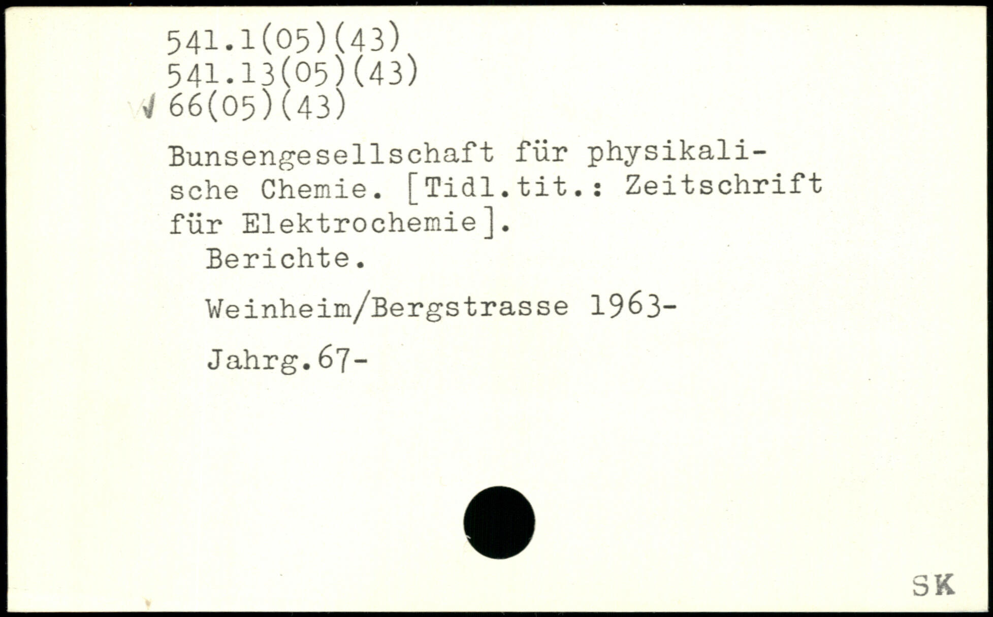 Bunsengesellschaft für physikalische Chemie. [Tidl.tit.s Zeitschrift für Elektrochemie]. Berichte. Weinheim/Bergstrasse 1963-Jahrg.67-