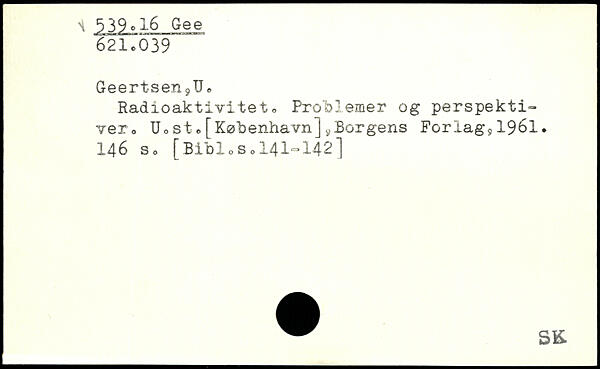 Radioaktivitet, Problemer og perspektiver, G,st,[København],Borgens Forlag,1961.