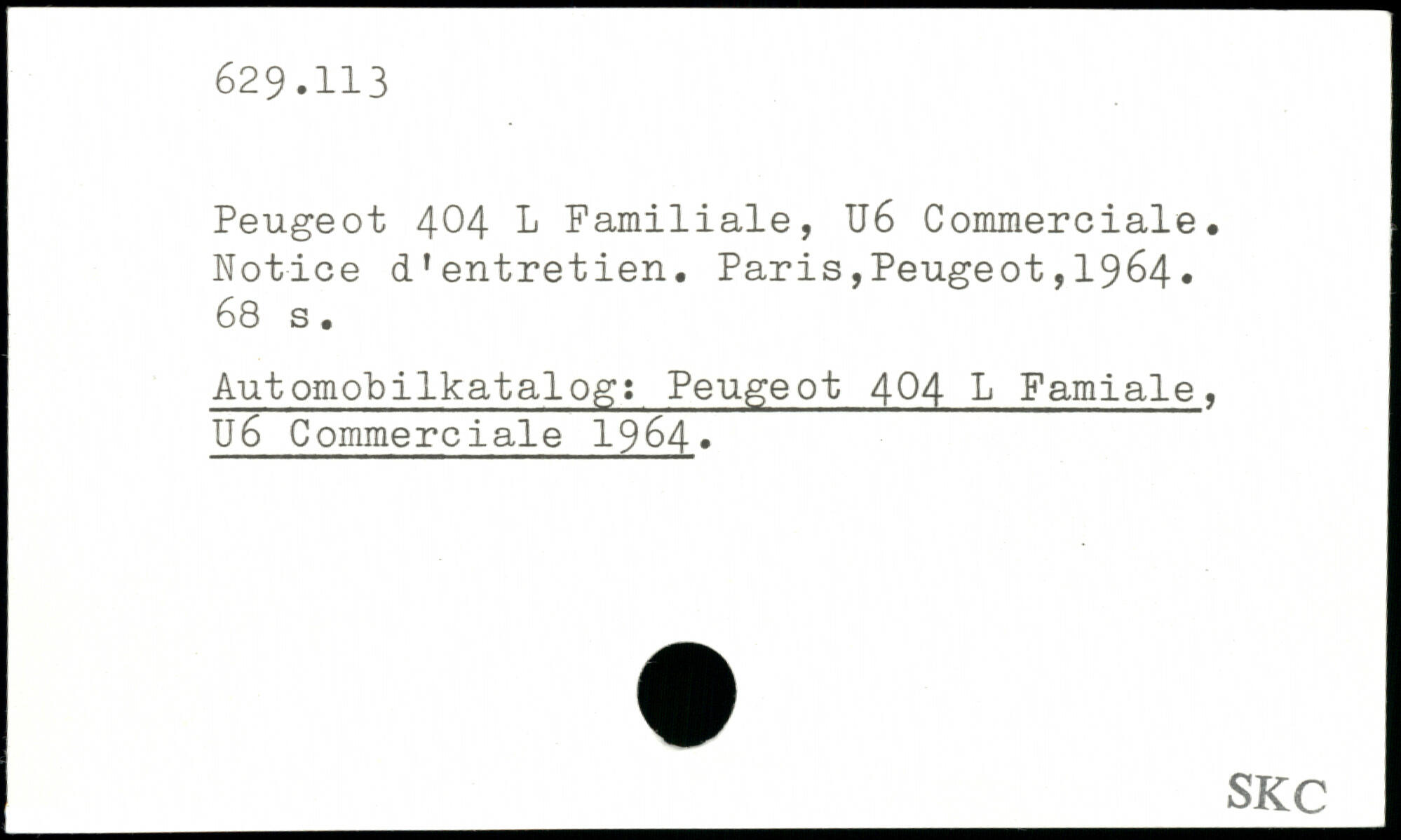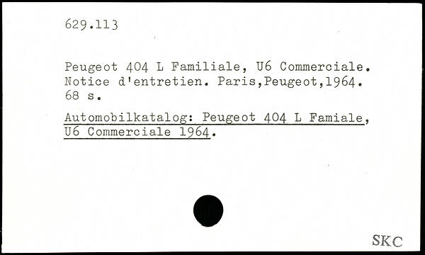 Peugeot 404 1 Familiale, U6 Commerciale. Notice d'entretien.
