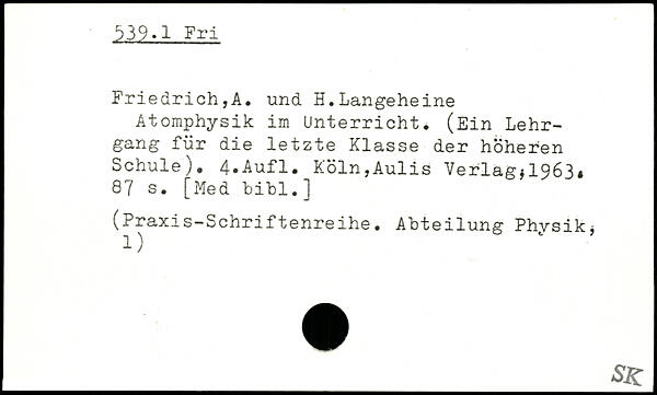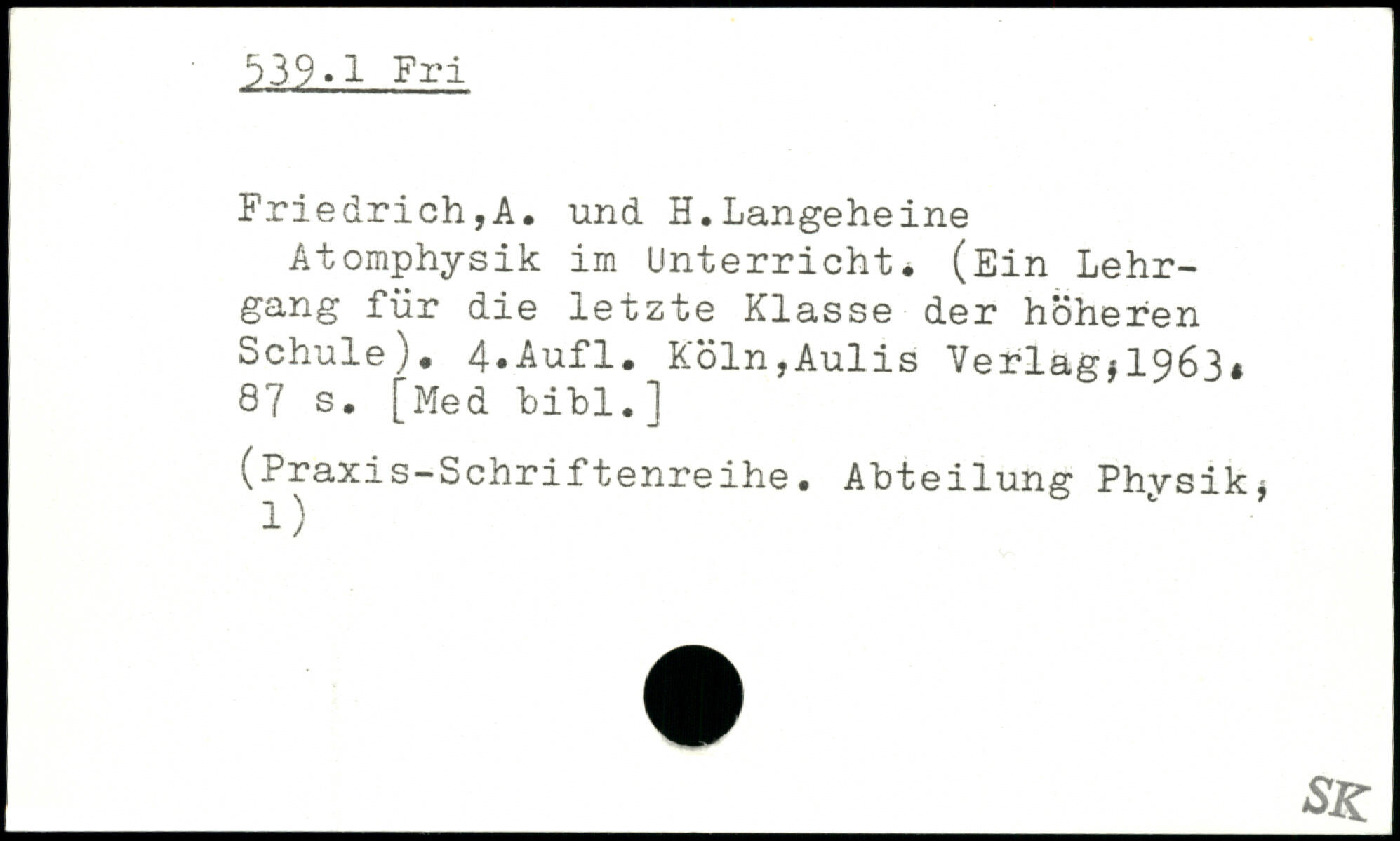 Atomphysik im Unterricht, (Ein Lehrgang für die letzte Klasse der höheren Schule), 4,Aufl. Köln,Aulis Verlag.1963.
