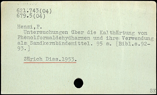 Untersuchungen über die Kalthärtung von Phenolformaldehydharzen und ihre Verwendung als Sandkernbindemittel.
