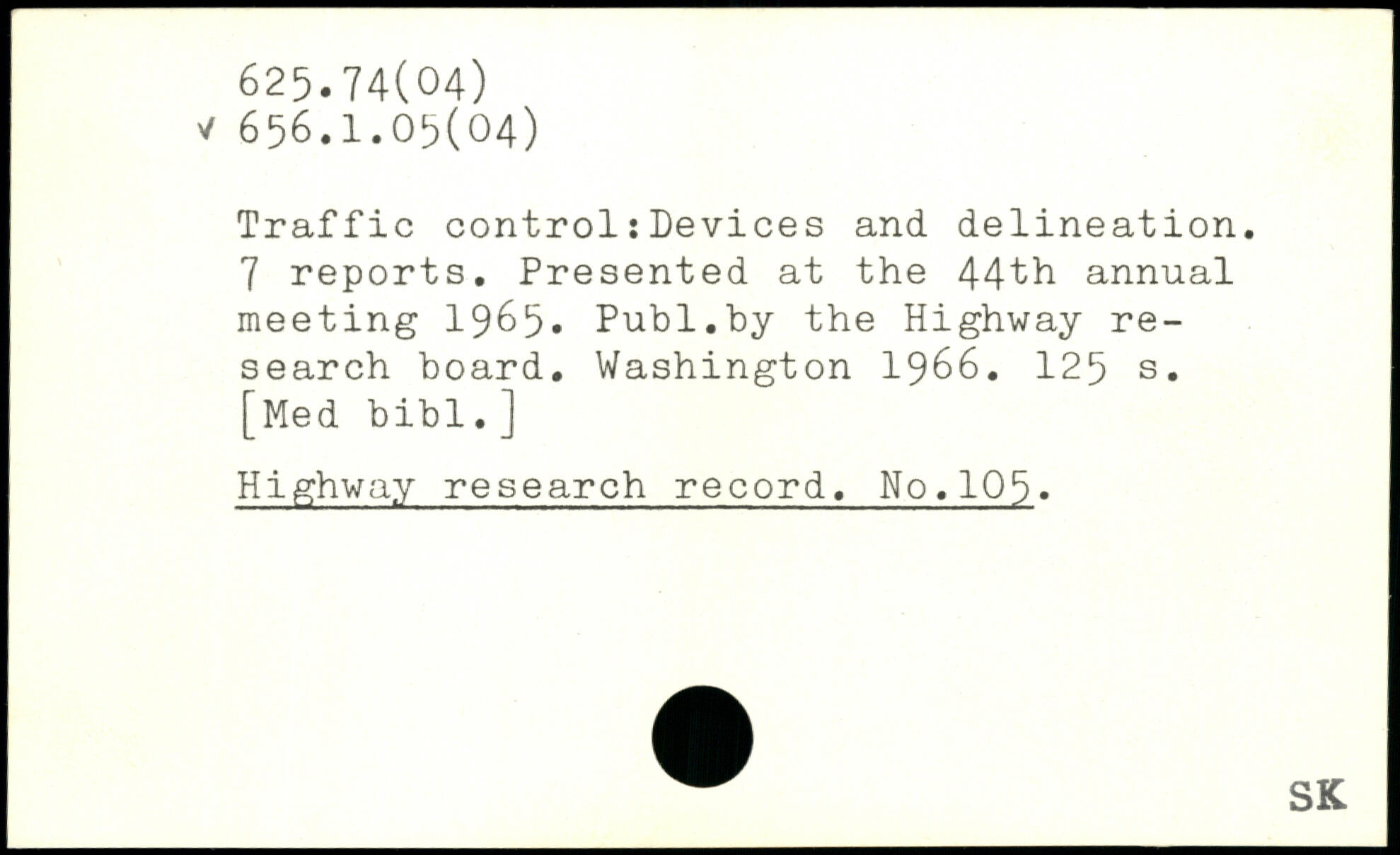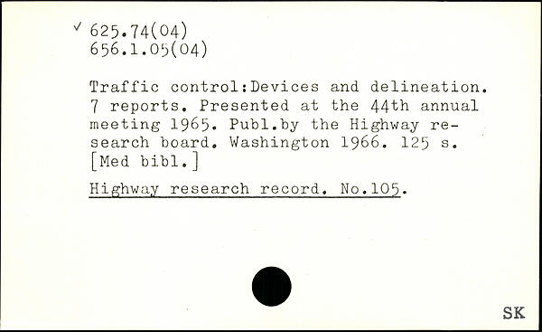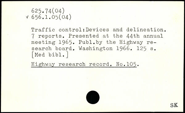 Traffic control:Devices and delineation. 7 reports. Presented at the 44th annual meeting 1965