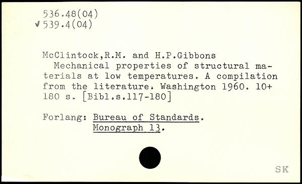 Mechanical properties of structural materials at low temperatures. A compilation from the literature.