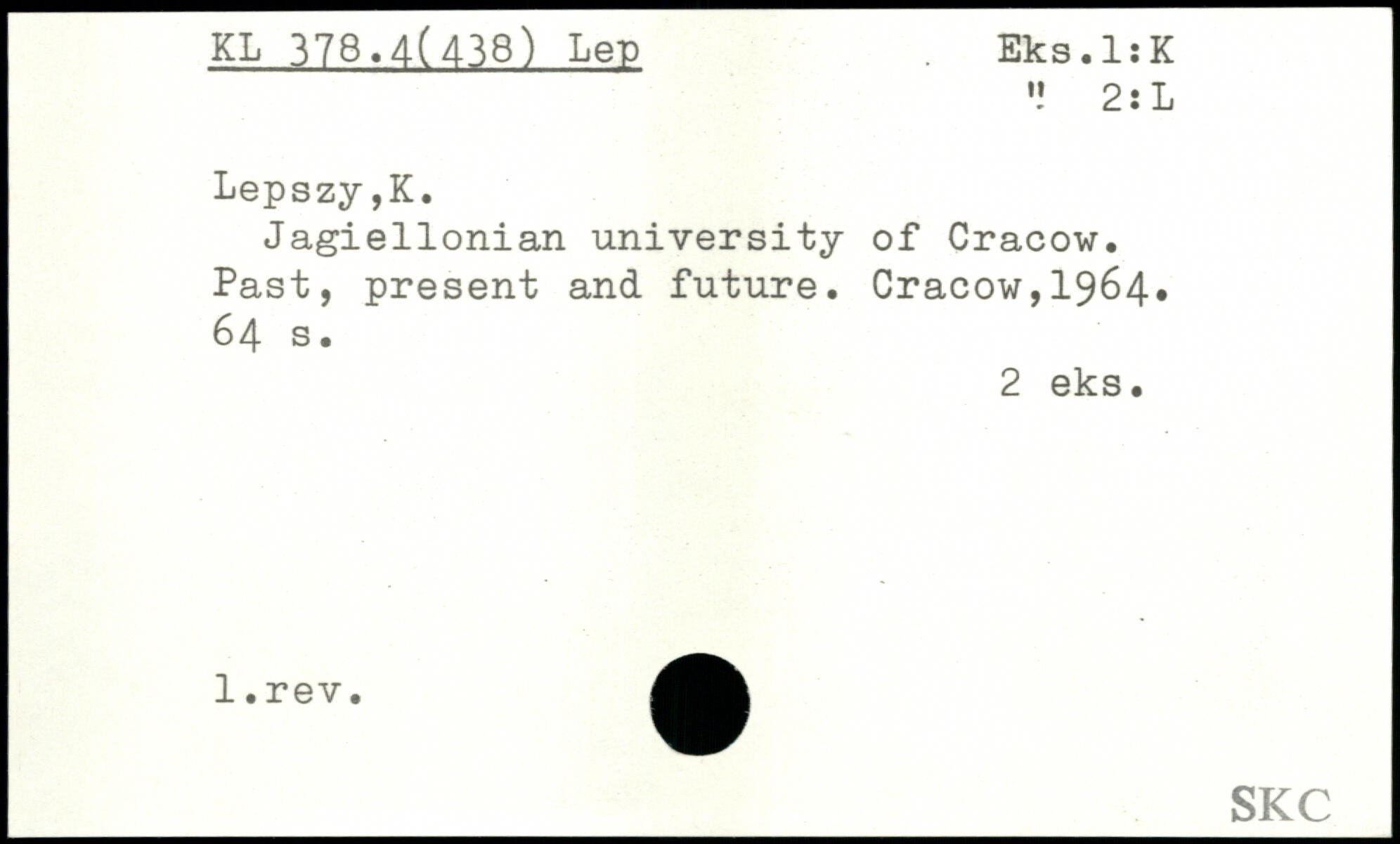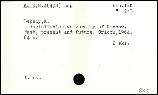 Jagiellonian university of Cracow. Past, present and future. Cracow,1964