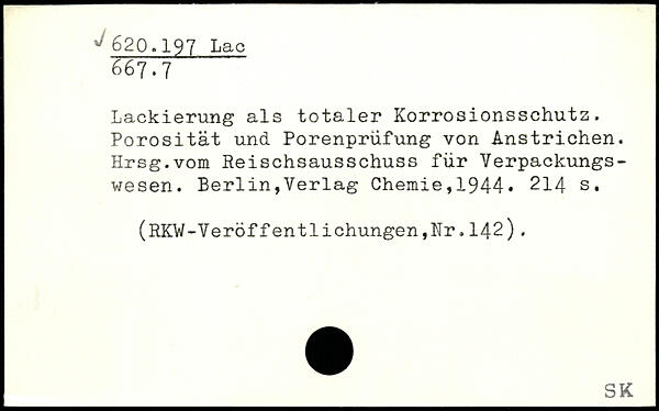 Lackierung als totaler Korrosionsschutz. Porosität und Porenprüfung von Anstrichen. Hrsg.vom Reischsausschuss für Verpackungswesen.