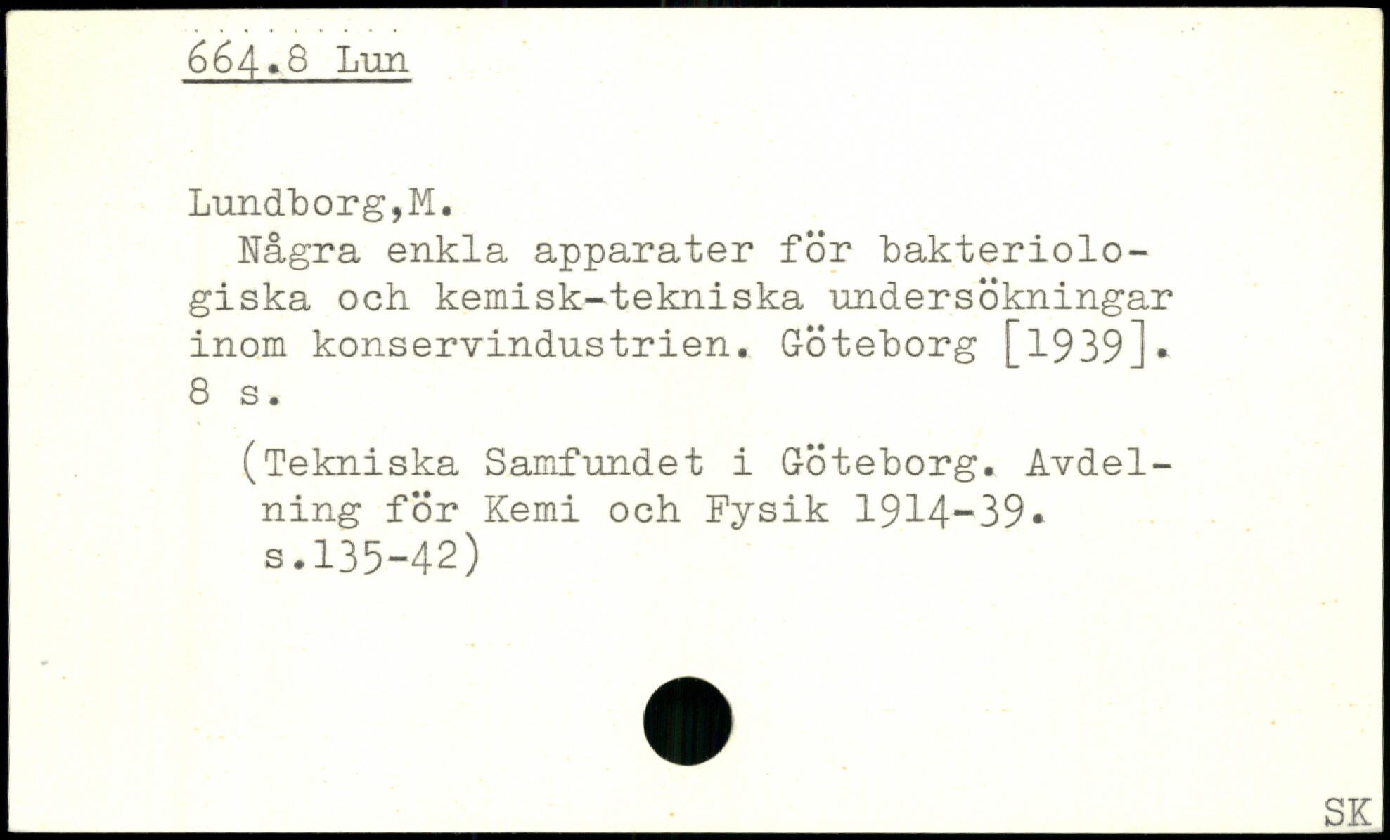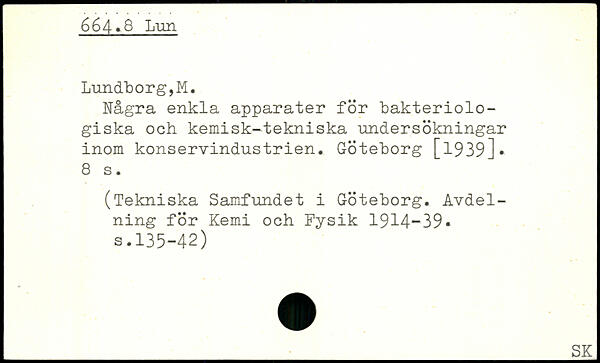 Några enkla apparater för bakteriologiska och kemisk-tekniska undersökningar inom konservindustrien. Göteborg [1939]