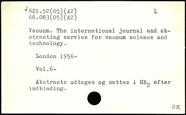 Vacuum. The international journal and ab-stracting service for vacuum science and technology.