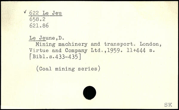 Le Jeune , I) , Mining machinery and transport. London, Virtue and Company Ltd,,1959