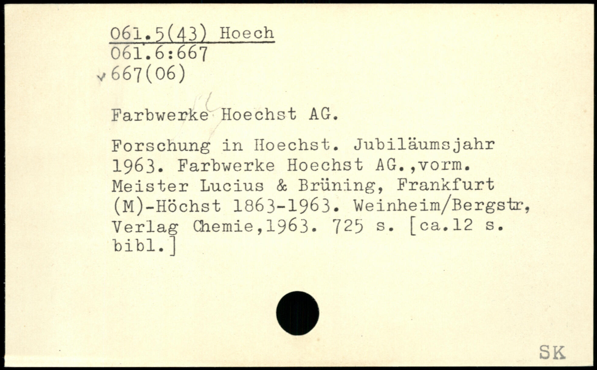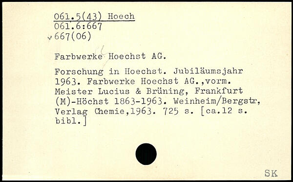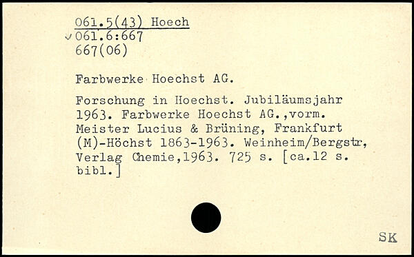 Forschung in Hoechst. Jubiläumsjahr j 1963. Farbwerke Hoechst AG.,vorm. Meister Lucius & Brüning, Frankfurt (M)-Höchst 1863-1963.