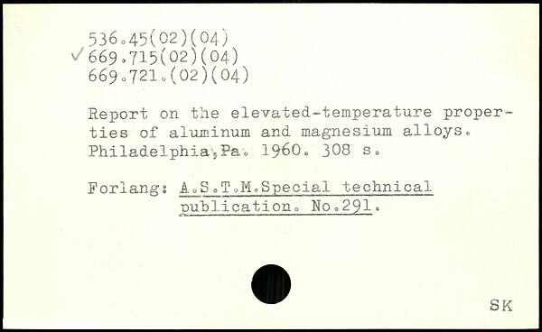 Report on the elevated-temperature properties of aluminum and magnesium alloys, Philadelphia;Pao 19^0,