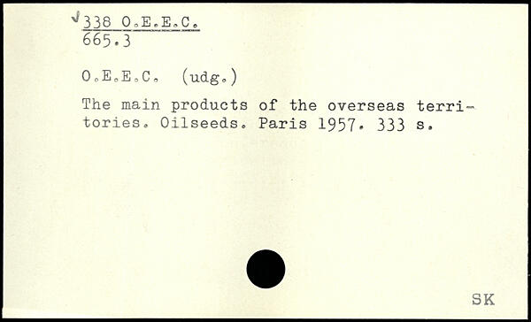 The main products of the overseas territories. Oilseeds.