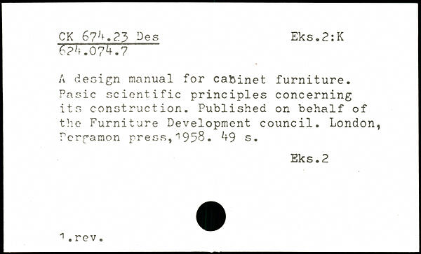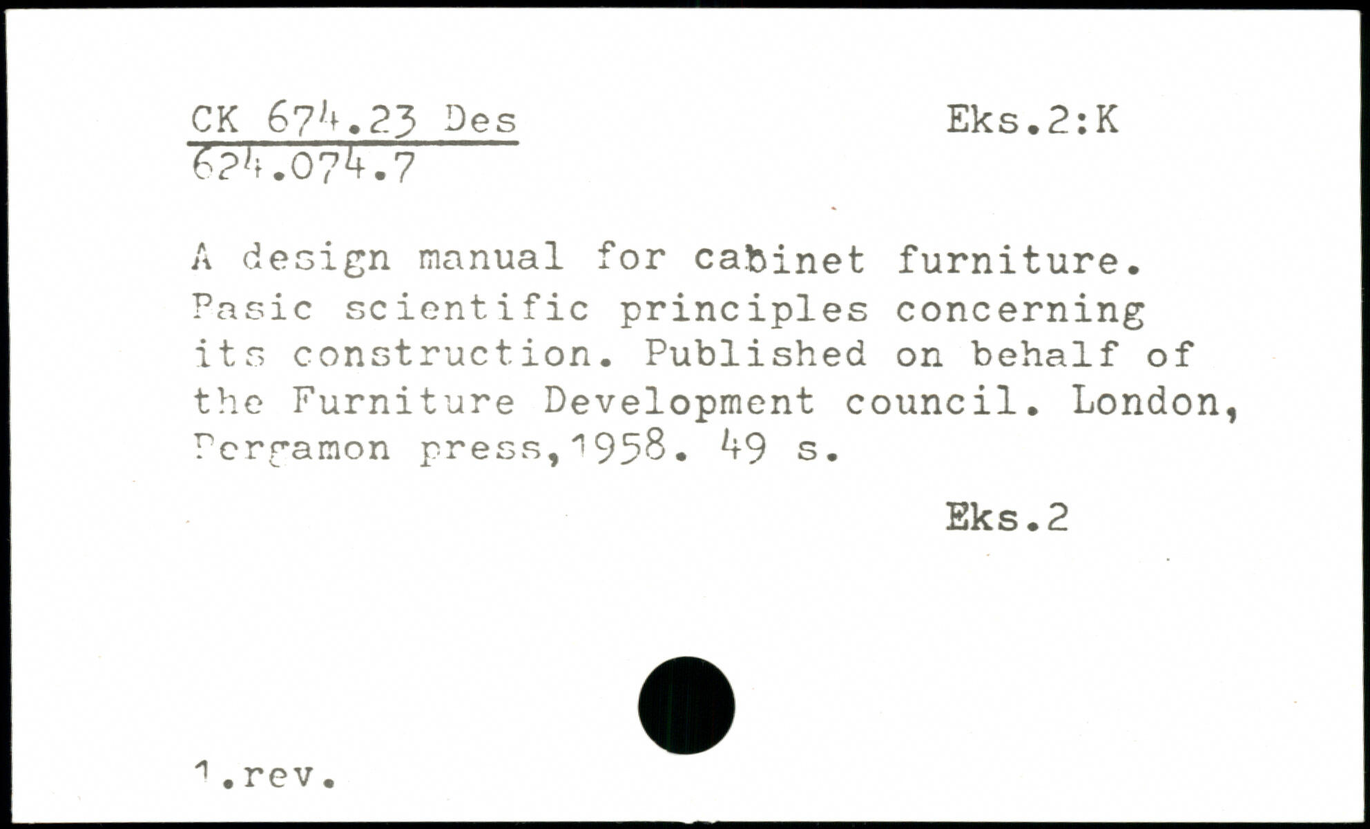 A design manual for cabinet furniture. Pncic scientific principles concerning its construction. Published on behalf of the Furniture Development council. London, Pcrgamon press,.958. A