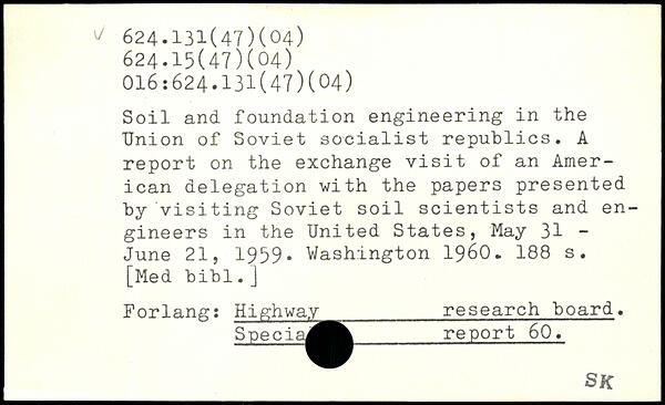 Soil and foundation engineering in the Union of Soviet socialist republics. A report on the exchange visit of an American delegation with the papers presented by visiting Soviet soil scientists and engineers in the United States, May 31 -June 21, 1939.