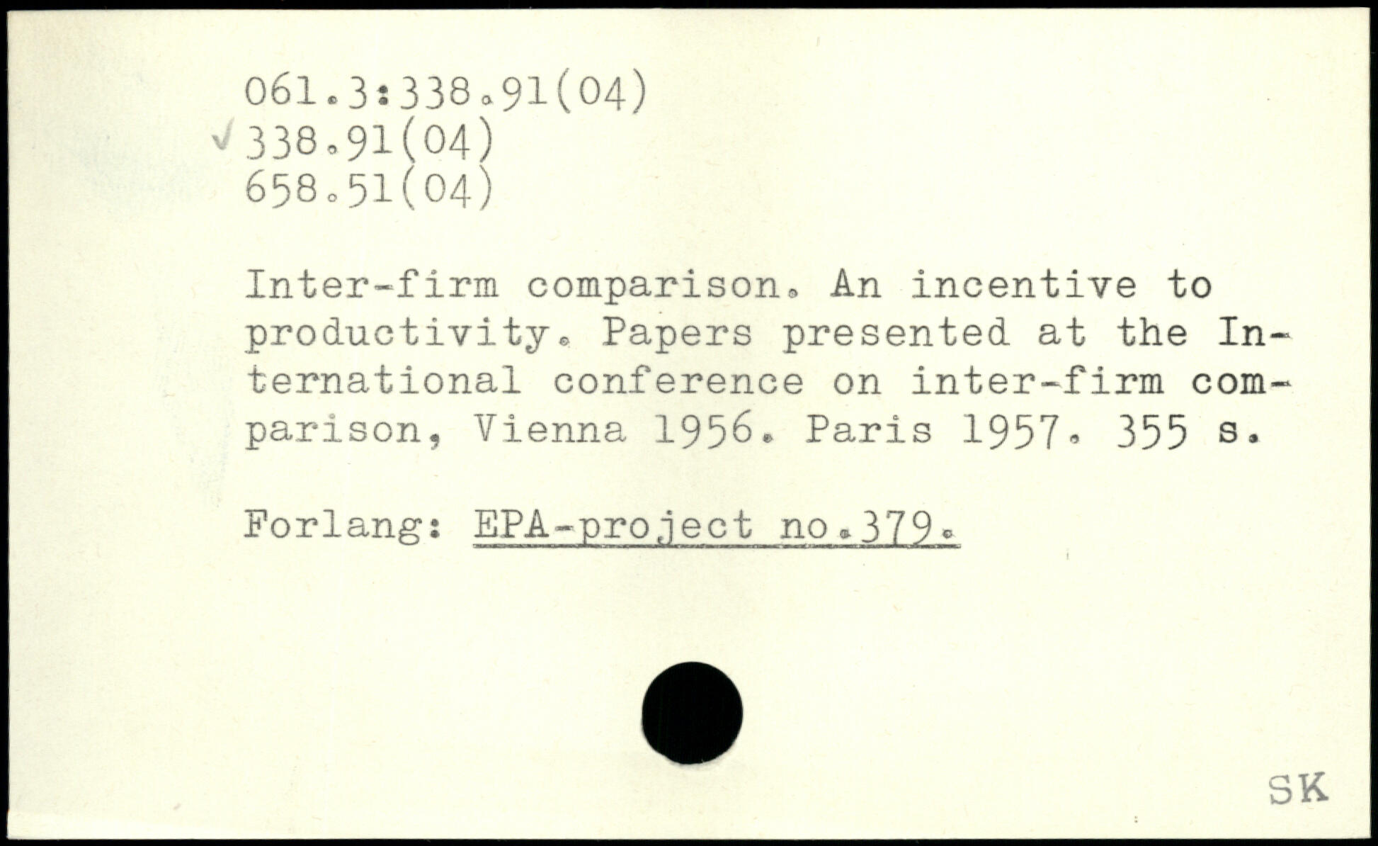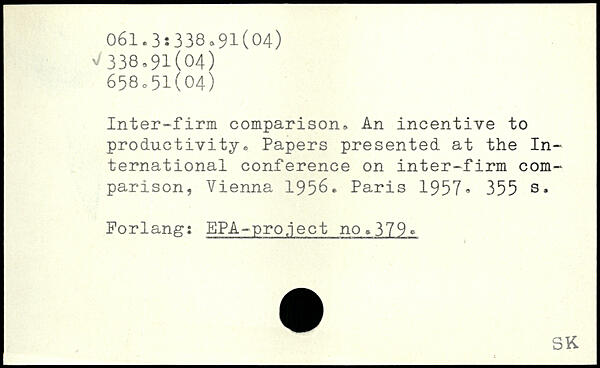 Inter-firm comparison An incentive to productivity. Papers presented at the International conference on inter-firm comparison, Vienna 1956.