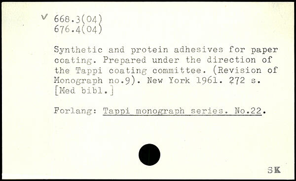 Synthetic and protein adhesives for paper coating. Prepared under the direction of the Tappi coating committee. (Revision of Monograph no.9).