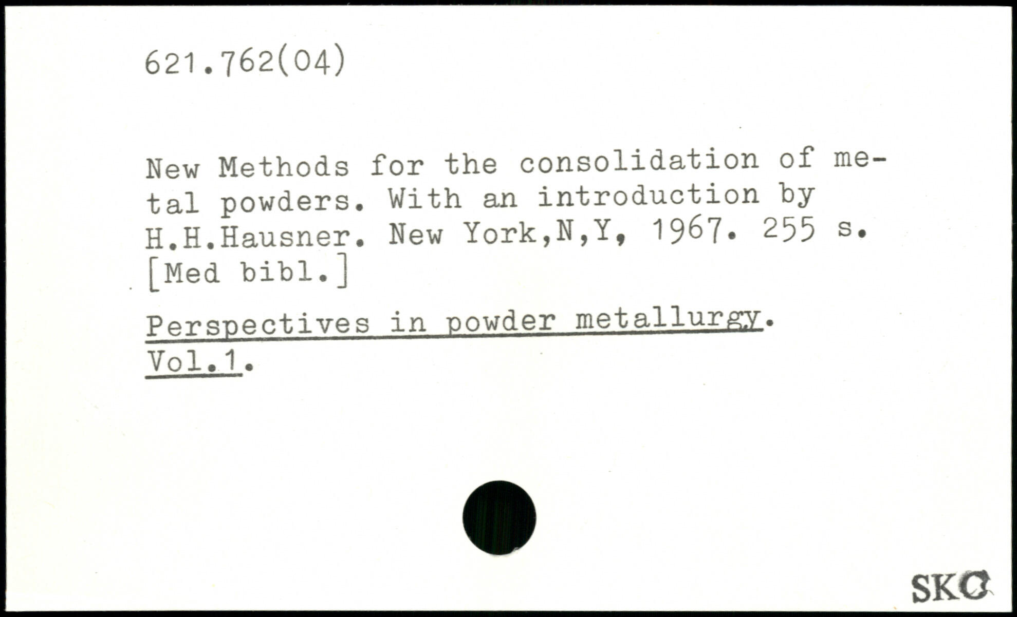 New Methods for the consolidation of metal powders. With an introduction by H.H.Hausner. New York,N,Y, 1967