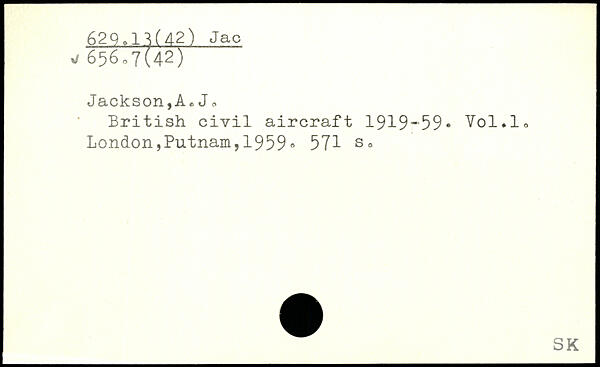 Jackson,AcJn British civil aircraft 1919-59- Void.