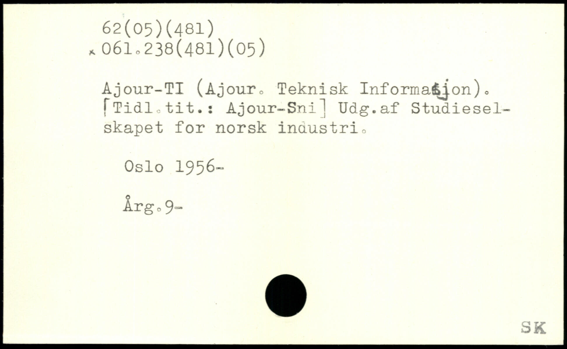 Ajour-TI (Ajouro Teknisk InformaéJ.on) , TTidlotit.: Ajour-Snil Udg.af Studieselskapet for norsk industri0 Oslo 1956“ Årgc 9-