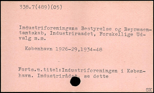 Industriforeningens Bestyrelse og Repræsentantskab, Industriraadet, Forskellige Udvalg m.m.