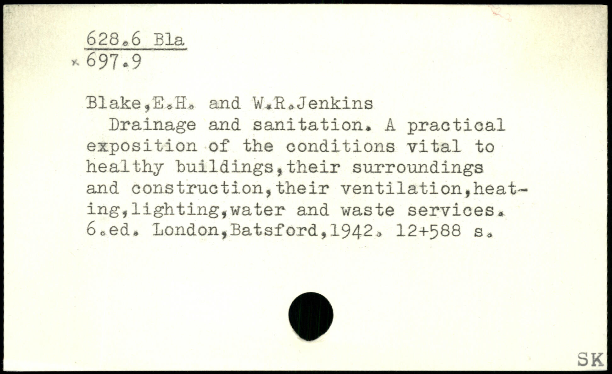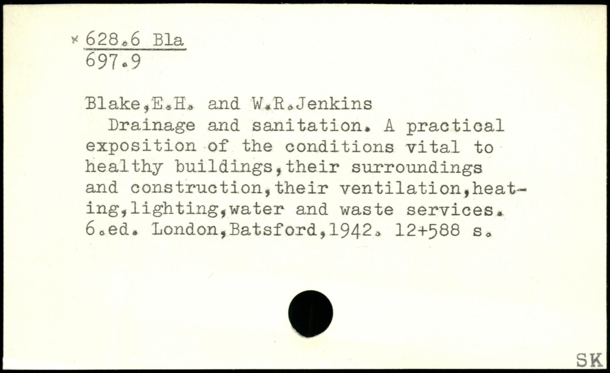 Blake,Esïï, and W.R.Jenkins ■ Drainage and sanitation. A practical exposition of the conditions vital to healthy buildings,their surroundings and construction,their ventilation,heating, lighting, water and waste services.