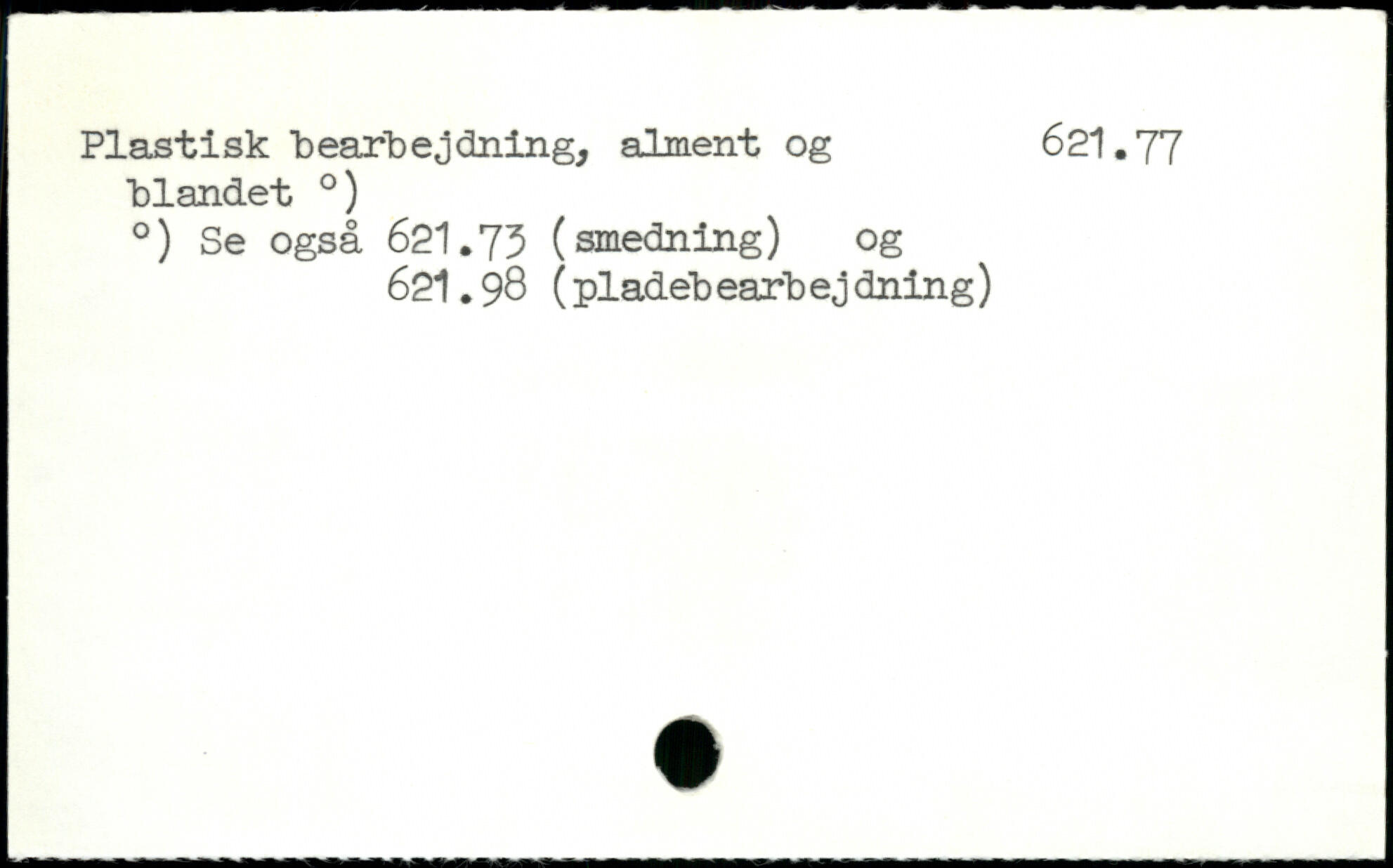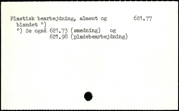 Plastisk "bearbejdning, alment og 621.77 "blandet .) .) Se også 621.73 (smedning) og 621.98 (pladeb earb ej dning)