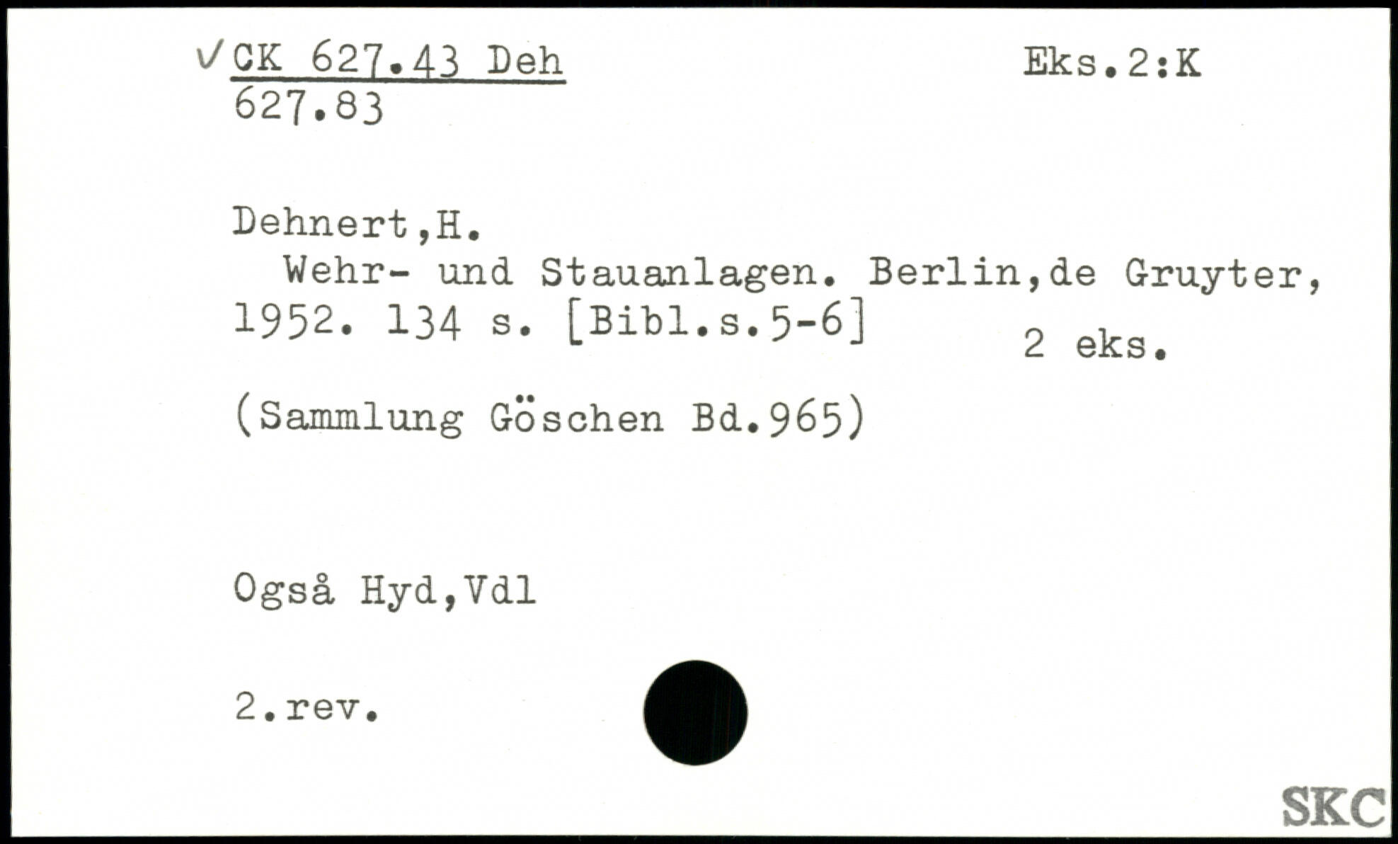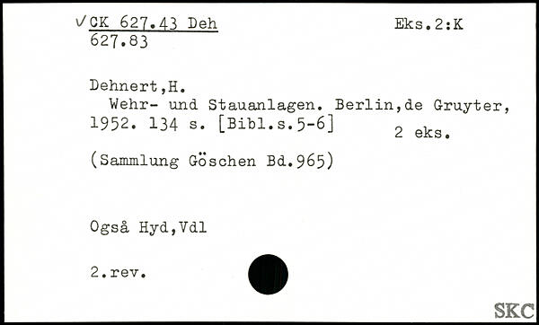 Wehr- und Stauanlagen. Berlin,de Gruyter, 1952.