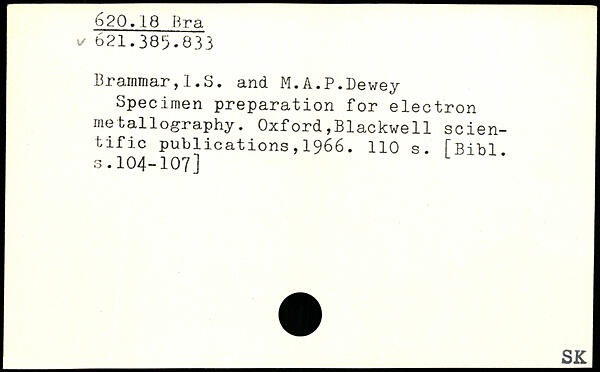 Brarnmar, I.S. and M. A.P.Dewey Specimen preparation for electron metallography.