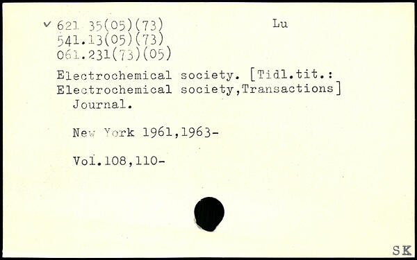Electrochemical society. [Tidl.tit.: Electrochemical society transactions] Journal.
