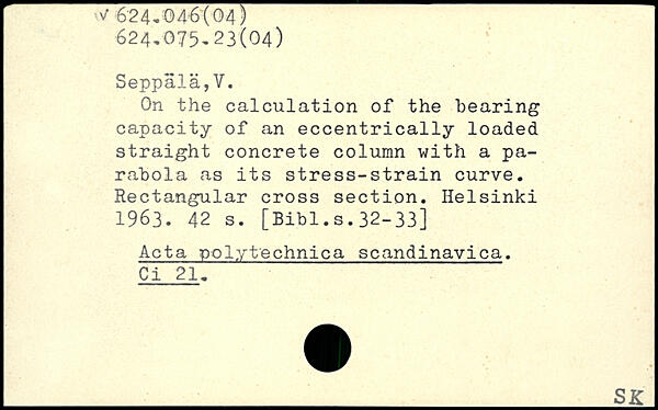 On the calculation of the bearing capacity of an eccentrically loaded straight concrete column with a parabola as its stress-strain curve. Rectangular cross section.