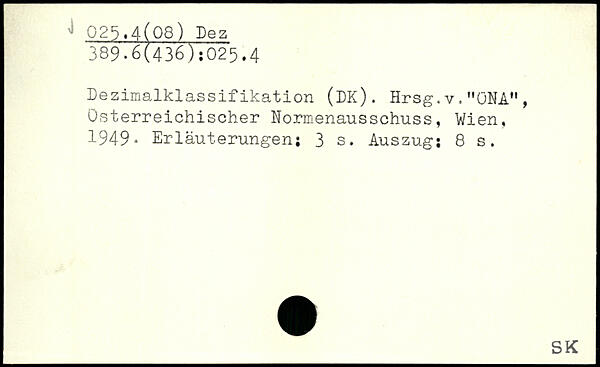 Dezimalklassifikation (DK). Hrsg.v."üNA", Österreichischer