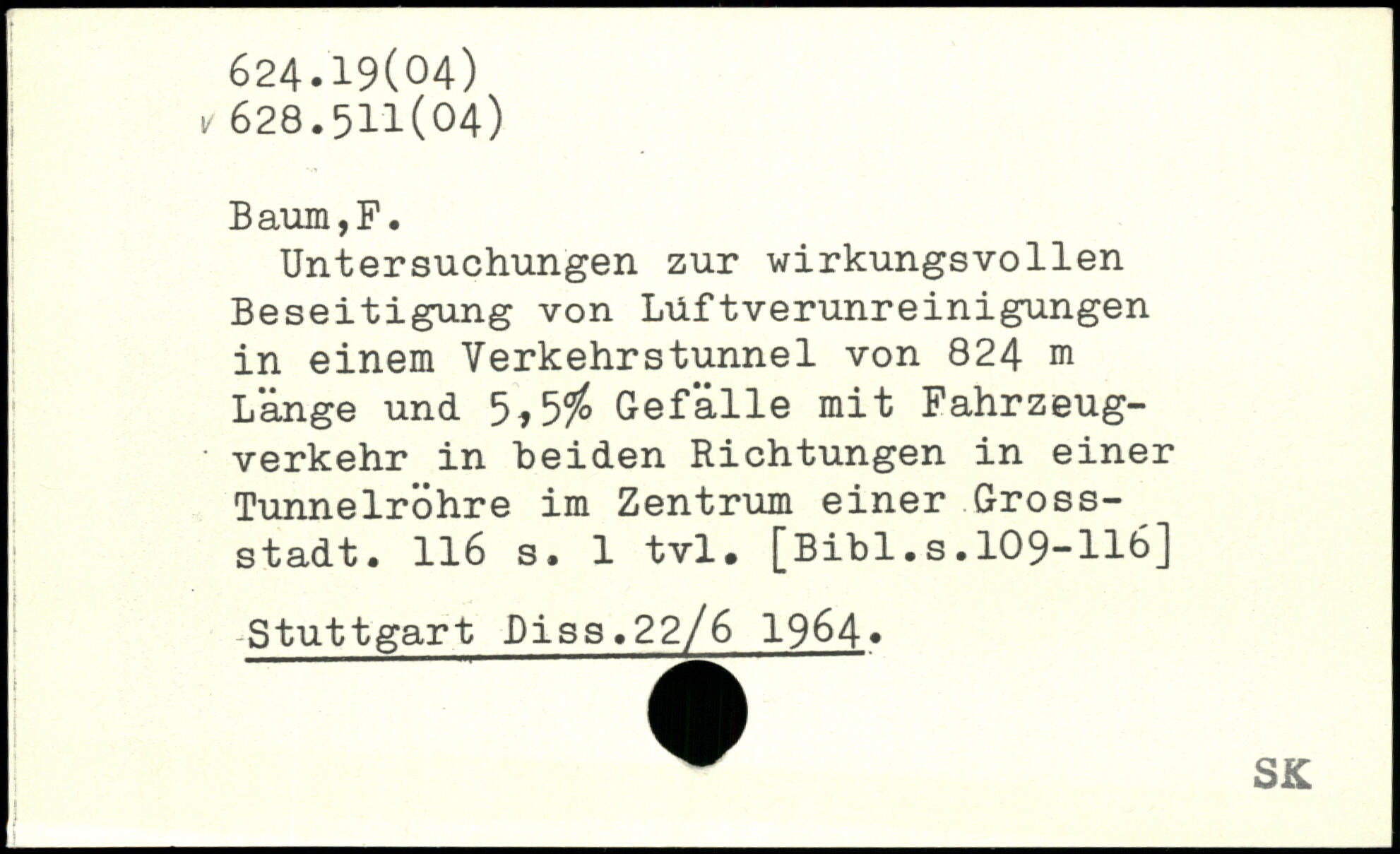 Untersuchungen zur wirkungsvollen Beseitigung von Lüftverunreinigungen in einem Verkehrstunnel von 824 m Länge und 5,5$ Gefälle mit Fahrzeugverkehr in Leiden Richtungen in einer Tunnelrohre im Zentrum einer Grossstadt.