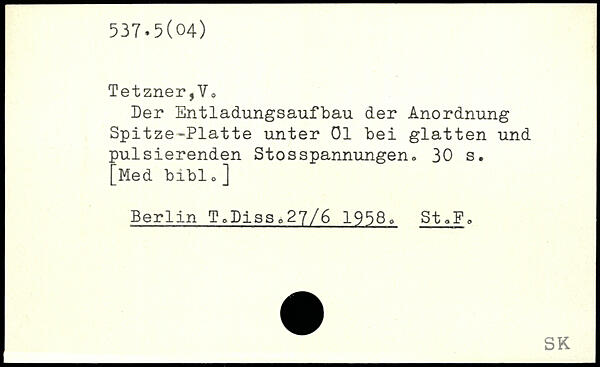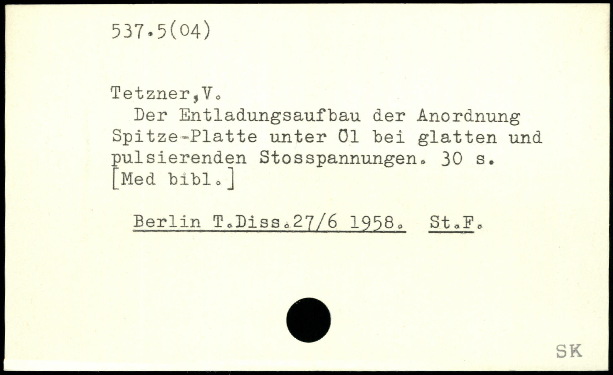 Der Entladungsaufbau der Anordnung Spitze-Platte unter öl bei glatten und pulsierenden StosSpannungen