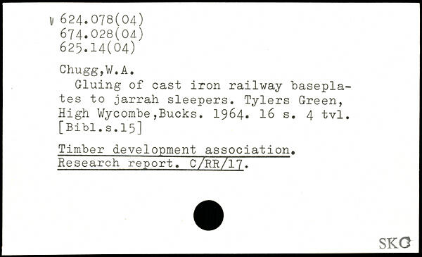 Gluing of cast iron railway “baseplates to jarrah sleepers. Tylers Green, High Wycombe,Bucks. 1964.