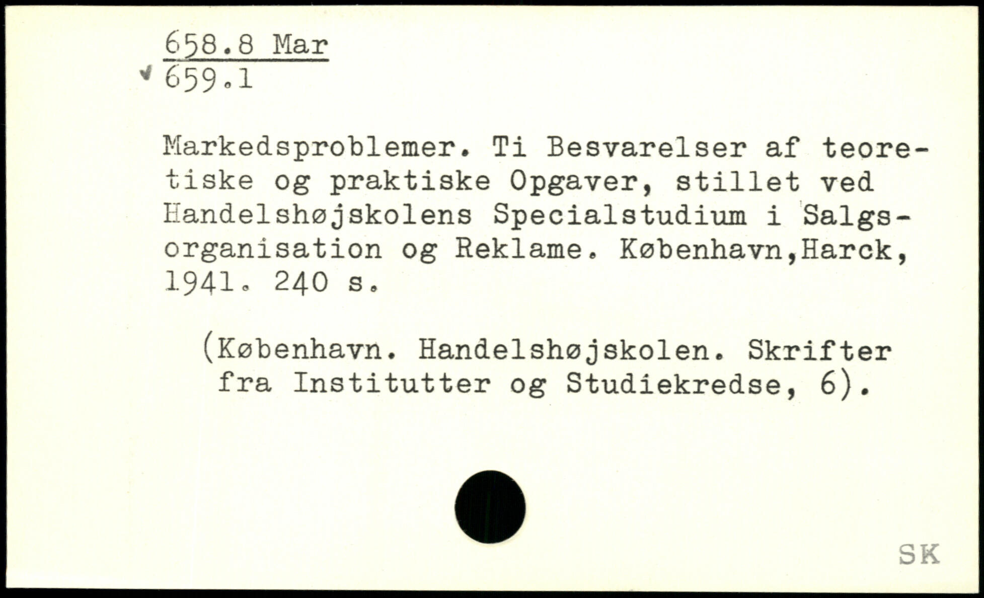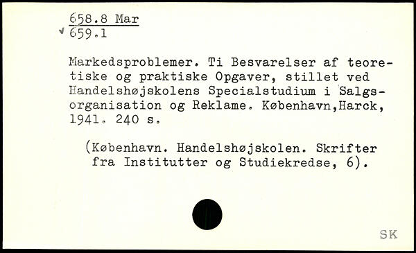 Markedsproblemer. Ti Besvarelser af teoretiske og praktiske Opgaver, stillet ved Handelshøjskolens Specialstudium i Salgsorganisation og Reklame.