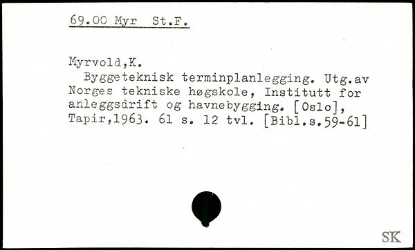 Byggeteknisk terminplanlegging. Utg.av Norges tekniske høgskole, Institutt for anleggsdrift og havnebygging. [Oslo], Tapir,1963.