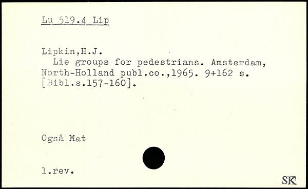 Lie groups for pedestrians.