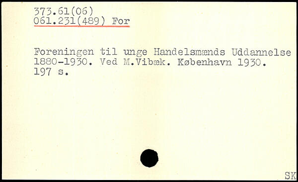 Foreningen til unge Handelsmænds uddannelse 1880-1930. Ved M.Vibæk.