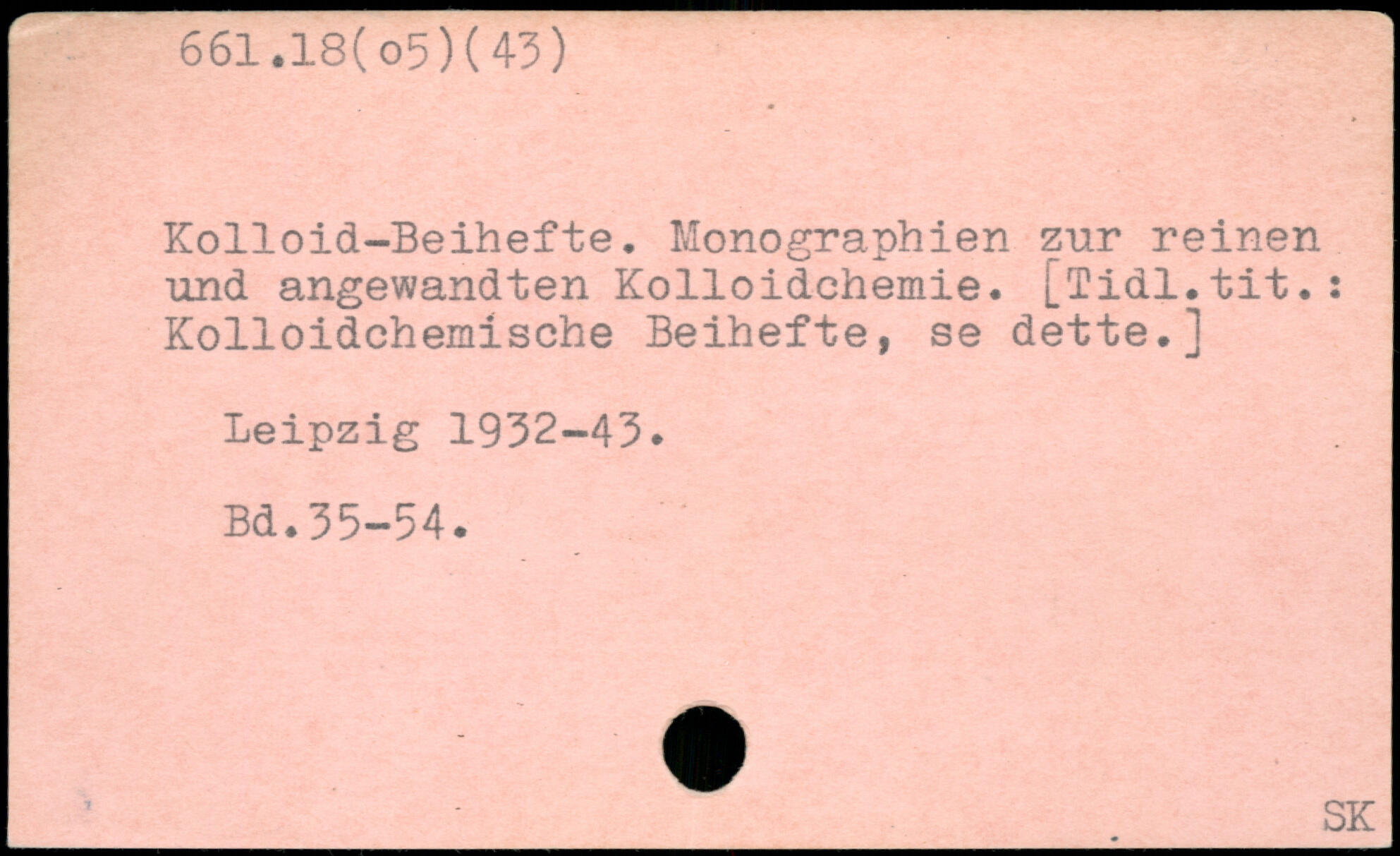 Kolloid-Beihefte. Monographien zur reinen und angewandten Kolloidchemie.