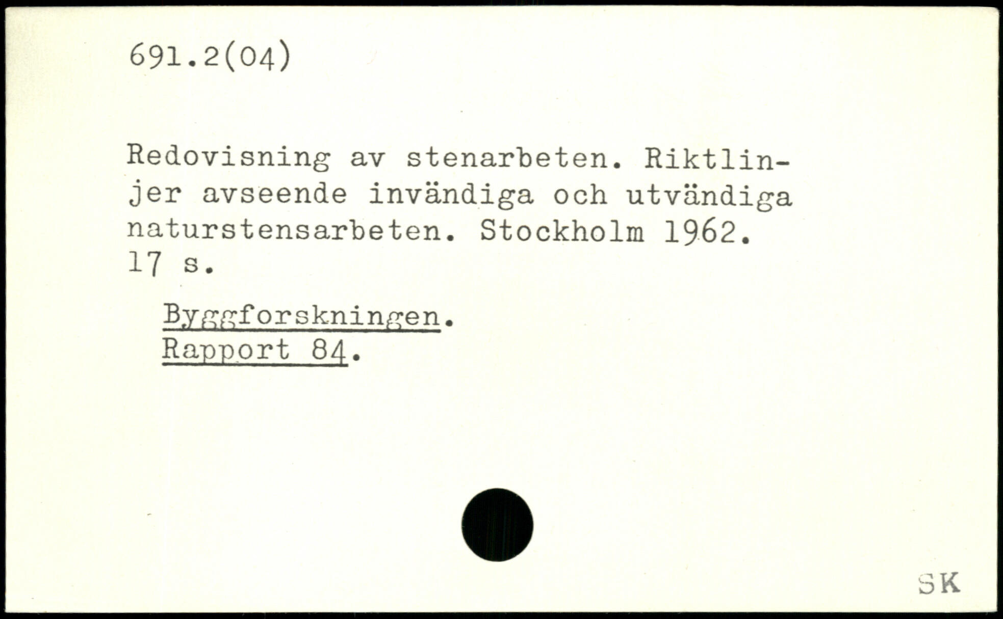Redovisning av stenarbeten. Riktlinjer avseende invändiga och utvändiga naturstensarbeten.