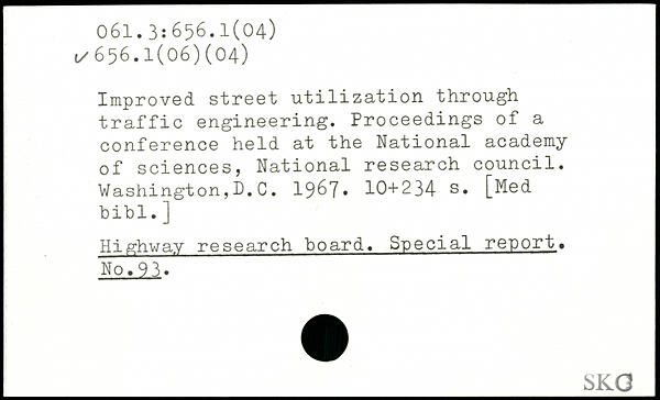 Improved street utilization through traffic engineering. Proceedings of a conference held at the National academy of sciences, National research council. Washington,D.C. 1967