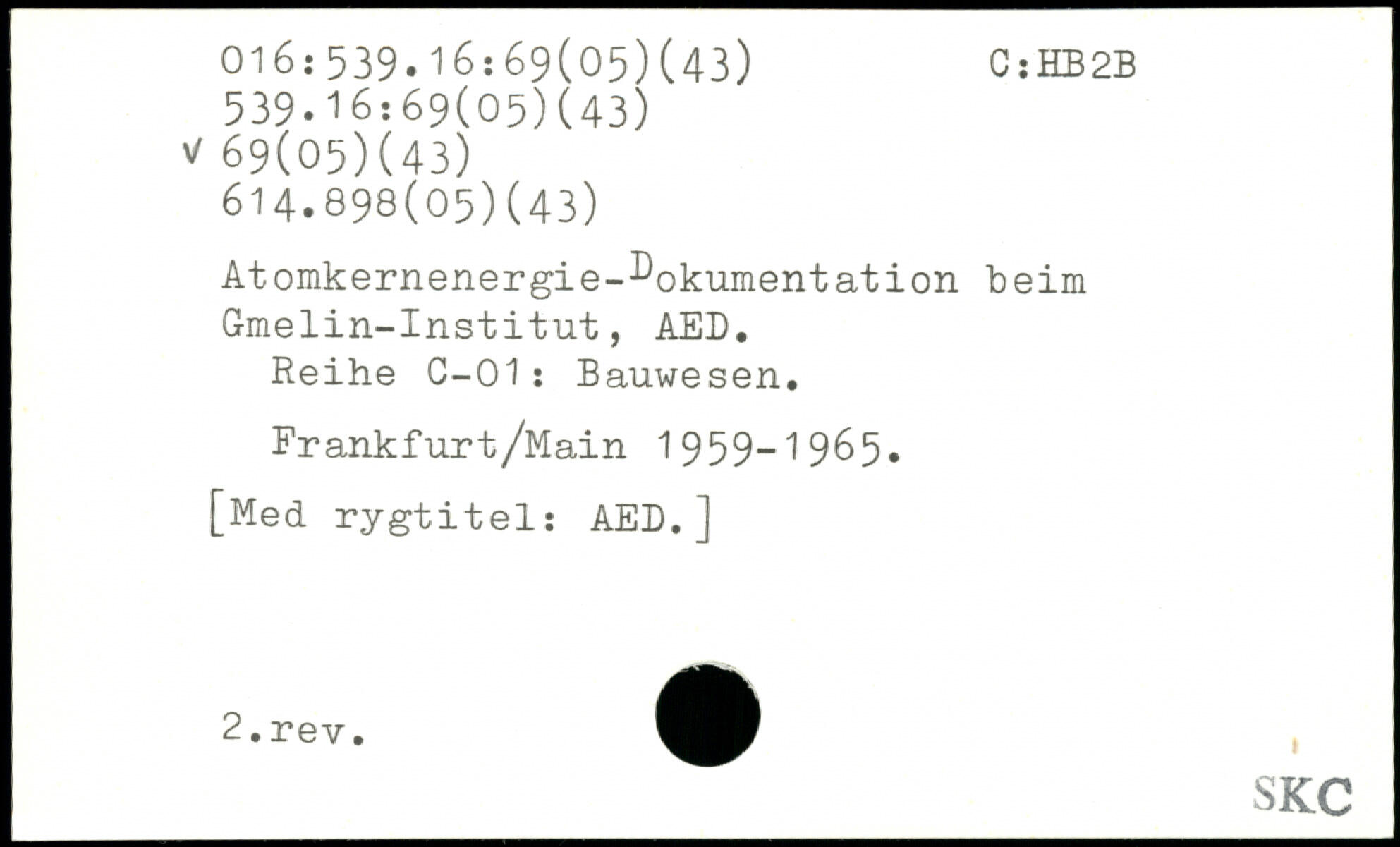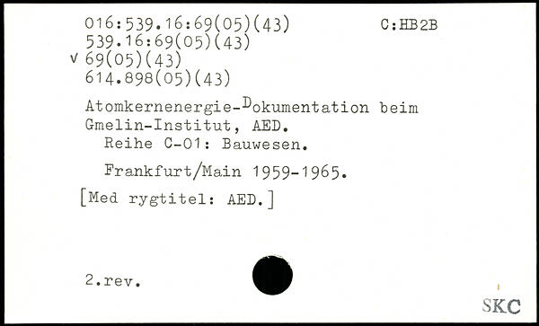 Atomkernenergie-^okumentation beim Gmelin-Institut, AED. Reihe C-01: Bauwesen. Frankfurt/Main 1959-1965.