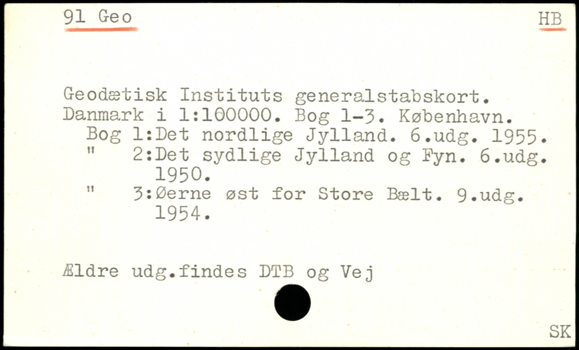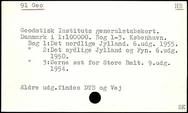 Geodætisk Instituts generalstabskort. Danmark i 1:100000. Bog 1-3. København. Bog l:Det nordlige Jylland.